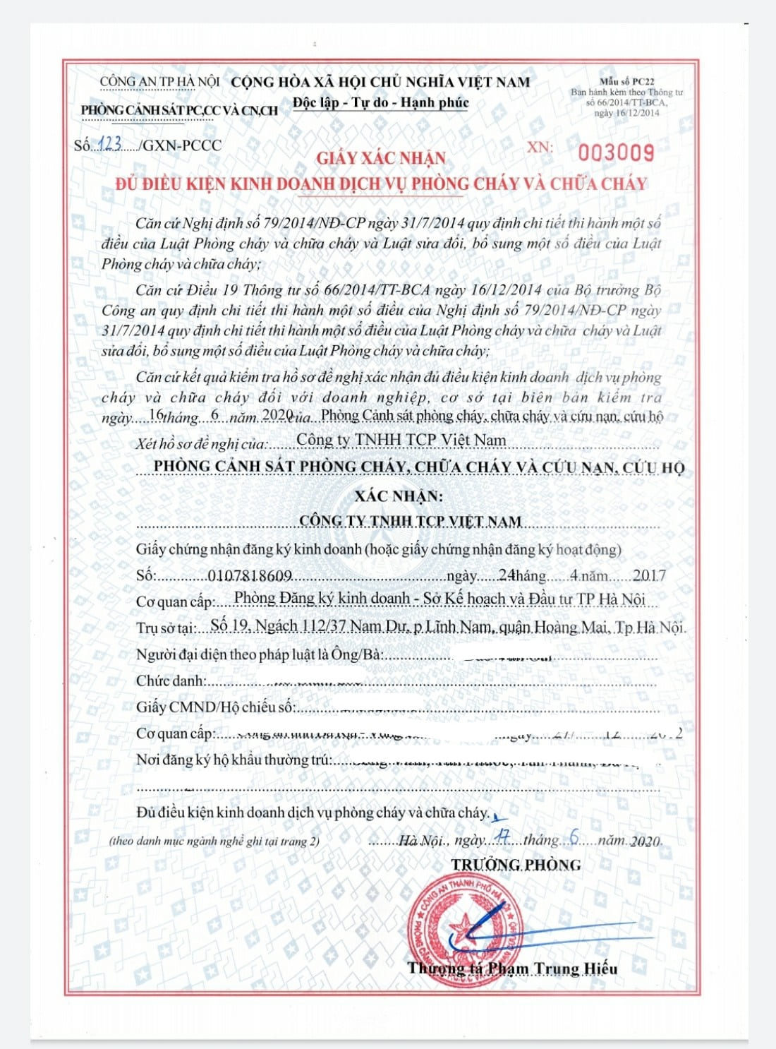 Hồ sơ pháp lý Công ty TNHH TCP Việt Nam