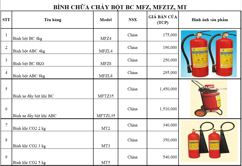 TCP VIETNAM phân phối: Bình chữa cháy Vinfire, Bình chữa cháy Dragon, Bình chữa cháy Sky, thiết bị vật tự PCCC kèm Dịch vụ Nạp sạc bình chữa cháy, Thi công tư vấn lắp đặt các loại bình PCCC, Thi công lắp đặt hệ thống báo cháy, Dịch vụ bảo trì theo đúng tiêu chuẩn PCCC.